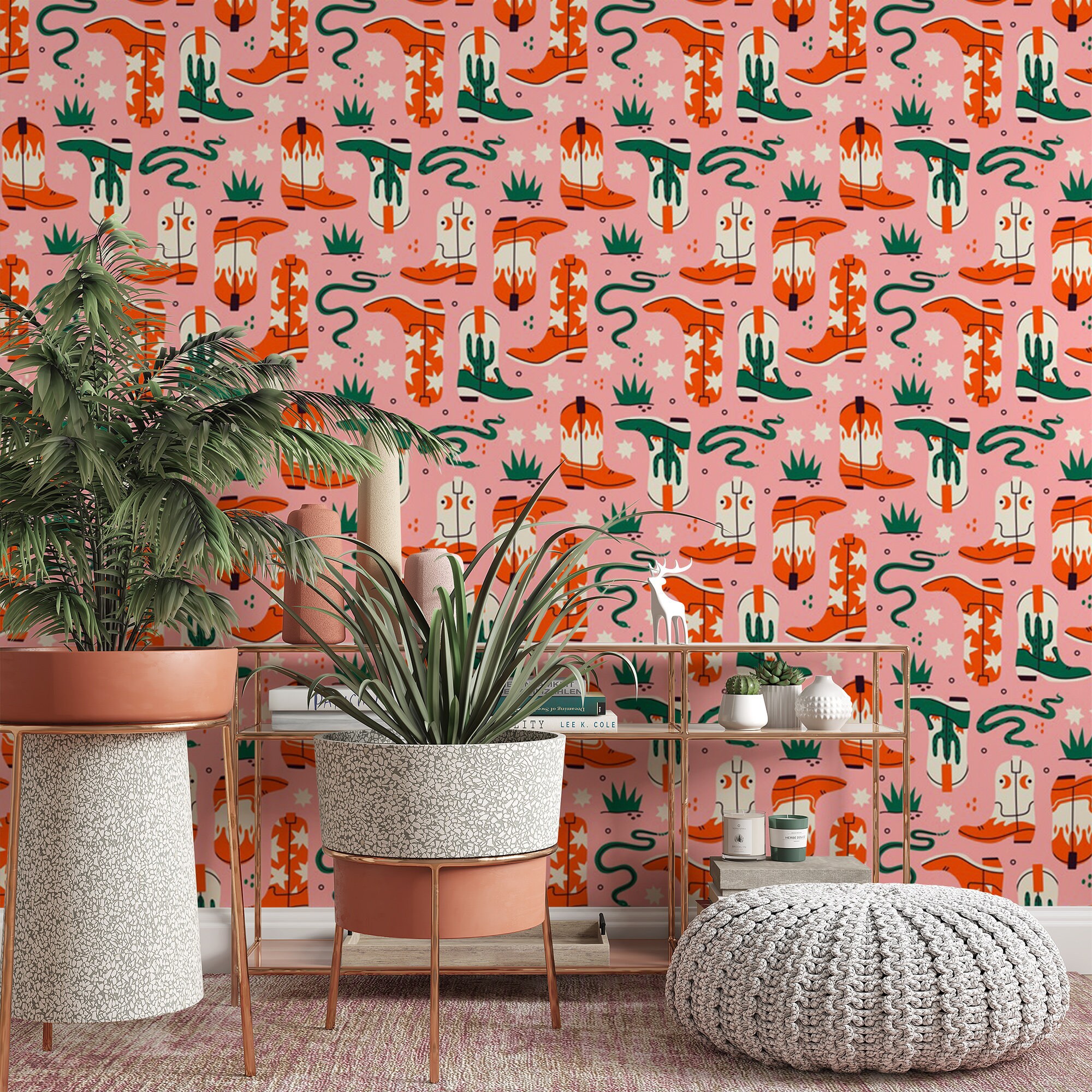 Buy Boots And Snakes Removable Wallpaper Country Pattern Wall Online In India Etsy